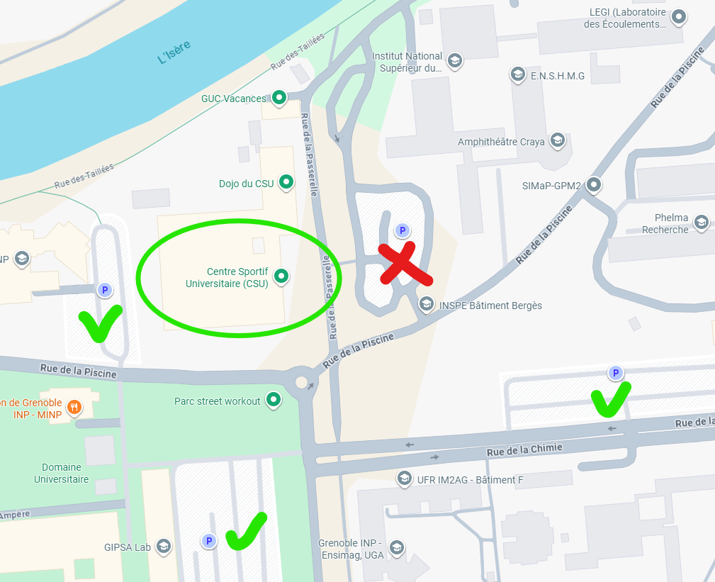- L’aquathlon se déroule sur le site de la Piscine du domaine universitaire, Centre Sportif Universitaire (CSU), 430 rue de la Passerelle à Saint-Martin-d’Hères (38400).